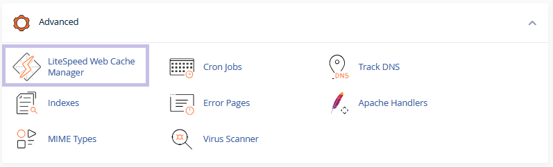 در بخش Advanced روی گزینه LiteSpeed Web Cache Manager کلیک کنید.