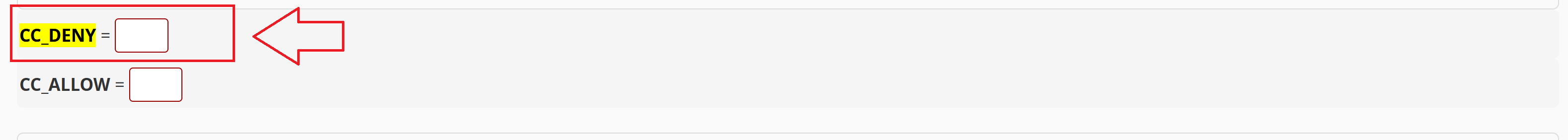 5. در فیلد `CC_DENY`، کد کشور چین یعنی `CN` را وارد کنید.
